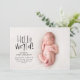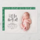 Hallo Welt Hand geschrieben moderne minimale Foto Geburtsankündigung. Moderne grafische Marker Stift Typografie Design. Moderner, hellgrüner Backer.