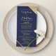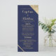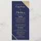 Das luxuriöse Hochzeitsprogramm in Gold und Blau der Marineblau und Imitate ist perfekt für jedes stilvolle und anspruchsvolle Glam-Mädchen. Dieses Design eignet sich perfekt für das trendige und stilvolle Party-Event. Passen Sie dieses Design mit Ihren eigenen Nachrichten und personalisierten Informationen an. Alle Designs sind gedruckt.