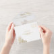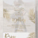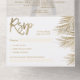 Moderne, schicke, tropische Hochzeit mit Goldpalmen, die alle in einer Einladung mit Details, Haupt-Einladung und uAwg, mit goldfähigem Palmenblatt und elegantem Drehbuch. Foto hinzufügen
