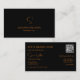 Modernes Schlichtes Schwarzes Orange mit Monogramm Visitenkarte