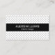 Fügen Sie einfach Ihren Namen und Beruf oder Ihre Spezialität zu einem schwarzen Streifen über einem Mini-Schwarz auf weißem Polka Punkt Muster hinzu. Fügen Sie auf der Visitenkarte wieder Ihren Namen, Ihren Jobtitel/Ihre Spezialität/Firma, Ihre Website und Ihre Kontaktinformationen hinzu. Ideal für Innenarchitekten, Life Coach, Event Planer und andere Berufe. Klicken Sie auf den Link "Rocklawn Arts", um das moderne geometrische Design anderer Objekte zu sehen. Digitales Bild. Copyright ©Claire E. Skinner. Alle Rechte vorbehalten.