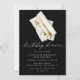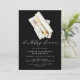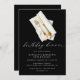 Moderne Einladungen zum Geburtstagsessen mit einer Aquarellillustrierung von extravagantem goldfarbenem Besteck und "Geburtstagsdinner" in einer handgeschriebenen Schrift. Kann sich in jedes Alter ändern. Weißer Schriftart auf kontrastierendem schwarzem Hintergrund.