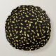 Modernes Schwarz-Gold-Blätter Illustriertes Muster Rundes Kissen