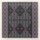 Ethnische Art geometrisches Muster mit Balkan Kilim inspirierte Ornament, die schwarz und grau stilisierte Vögel im Weingarten darstellen, und bestickte dunkelgraue Rahmen mit lebhaften rosa Akzenten.