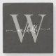 Girly Modern Elegant Black and Gray Monogram Initial Name Signature Script Custom Personalisiert Stone Untersetzer. Dieses Design mit Ihrem Vornamen in einem hübschen handgeschriebenen Stil Swash Schwanz Schriftart Typografie (oder Kalligrafie) mit Monogramm initial in grau und weiß auf schwarz. Diese sind einfach zu anpassen. Große stilvolle feminine Hauswärmeschenke, Hochzeit, auch zum Geburtstag, süße 16 Geburtstagsparty, Brautparty, Muttertag und Es ist für das Mädchen, das einzigartige stilvolle Sachen Lieben.