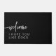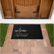 Diese Türmatte ist mit einem modernen schwarzen Hintergrund und einer minimalistischen Schriftart-Kombination ausgestattet. Es ist die perfekte Ergänzung, um Ihre Gäste in Ihrem Haus oder außerhalb Ihres Hauses zu empfangen.