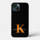 Modernes Schwarz-Orange Monogramm iPhone 13 Mini-Fall