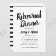 Diese minimalen und stilvollen Einladungen zum Hochzeitsessen sind mit einem handgeschriebenen, schwarz gebürsteten Schrifttitel und schwarz-weißen Streifen auf der Rückseite der Probe versehen. Der moderne, kundenspezifische Text kann für Ihre besondere Veranstaltung völlig personalisiert sein.