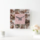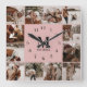 Modernes Schwarz-Rosa-Monogramm der 12-poligen Fot Quadratische Wanduhr