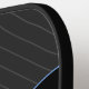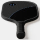 Ein modernes Monogram Pickleball Paddel mit schwarz-blau-farbenem Design mit Streifen. Dieses elegante gestreifte Design zeigt das blaue Monogramm in einem Kreis an der links oberen Ecke des Paddels.