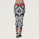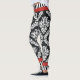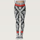 Moderne schwarz-weiße Damastmuster rote Leggings. Der größte Teil dieser Leggings ist mit einem Damast bedeckt. Ein rotes Band umkreist es direkt unter der Taille und auf jedem Bein und schwarz-weiße Streifen oben und unten.