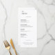 An den Hochzeitstischen des Hauses erwartet Sie ein elegantes, schwarz-weißes Abendmenü. Dieses Design mit minimalistischer Typografie und einem sauberen Layout ergänzt moderne, formale und schwarze Krawatte-Hochzeitsstile. Personalisieren Sie es mit Ihren Menüauswahl und Veranstaltungsdetails, um den Gästen einen stilvollen ersten Blick auf das Angebot des Abends zu geben.