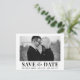 Moderne, trendy Save the Date Schwarz-Weiß-Foto-Postkarte mit Blockskript- und Kalligraphieskriptkombination.