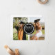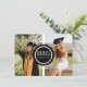 Eine moderne, schicke, einfache Abschluss-Ankündigungskarte mit zwei individuellen Fotos, die mit einem schwarz-weißen Kreis in der Mitte entworfen wurden, wo der Name des Absolventen, der Bachelor-Abschluss und das Jahr der Klasse geschrieben werden.