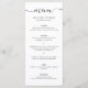 Elegantes, individuelles Schwarz-Weiß-Hochzeitsmenü mit einem modernen Script-Schriftart. Einfach online personalisieren. Dieses minimalistische Schwarz-Weiß-Hochzeitsmenü wird durch passende Elemente ergänzt.