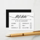 Modernes Schwarz/Weiß-Menü mit einfacher Skriptaus Begleitkarte