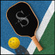 Modernes Schwarz-Weiß-Mit Monogramm-Initial + Name Pickleball Schläger