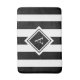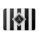 Die moderne, schwarz-weiß gestreifte Monogramm-Schaumstoffbadematte passt zu Ihrem Badezimmer. Es ist mit vertikalen Streifen und Ihren ersten Nachnamen in der Mitte des schwarz-weißen Rahmen. Klicken Sie auf die Option Vorlage personalisieren und geben Sie Monogramm ein.
