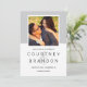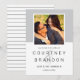 Moderne Hochzeit speichern die Datumskarten mit einem in Platin grau gerahmten quadratischen Verlobung-Foto mit einem einfachen und minimalistischen Mongramm der Braut- und Bräutigam-Namen mit einem eleganten Skriptampersand. Personalisieren Sie den Save the Date Wortlaut mit dem Hochzeitsdatum und Ort. Auf der Rückseite der Karte befindet sich ein schlankes Muster aus schwarz-weißen horizontalen Streifen.