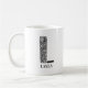 Dieser moderne schwarz-weiße Blumenbrief L kann mit Ihrem Namen auf beiden Seiten der Tasse völlig personalisiert werden.