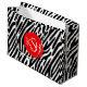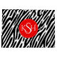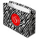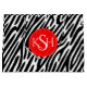 Elegante, moderne schwarz-weiße Zebrastreifen, nahtlose Muster Tierprint mit anpassbarem Monogramm und rotem Akzent.