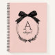 Modernes Schwarzer Bow Elegantes Rosa Monogramm Notizbuch