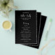 Moderner Flyer für Hochzeitsfeiern mit schwarzem Budget mit einem einfachen Design mit Ihren Namen in einer eleganten Schrift und Ihren Veranstaltungsdetails in einem minimalen serifenlosen Schriftart. Dieses schicke Hochzeitsprogramm passt gut zu jedem Hochzeitsstil.