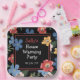 Modernes, unterhaltsames und elegantes Haus Erwärmung Party Design mit einem schlichten, aber schönen Blumenmuster mit prächtigen Rot-, Blau-, Rosa- und Gelbblumen, ergänzt durch moderne grüne Botanicals auf schwarzem Hintergrund. Moderne, anpassbare Typografie für die Veranstaltungsdetails.
