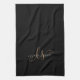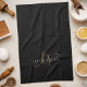 Modernes Black Gold Feminine Script Mit Monogramm Küchenhandtuch. Dieses elegante Küchenhandtuch mit individueller Monogramm und eigenem Namen ist einfach zu personalisieren.