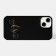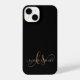 Modernes Black Gold Feminine Script Mit Monogramm iPhone Case. Dieses elegante, moderne Handy-Gehäuse lässt sich einfach mit Ihrem individuellen Monogramm und Namen personalisieren.