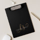 Moderne Schwarz Gold Feminine Script Mit Monogramm Clipboard. Diese moderne, elegante Zwischenablage personalisieren Sie einfach mit Ihrem individuellen Monogramm und Namen.