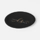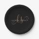 Moderne Schwarz Gold Feminine Script Mit Monogramm Paper Plate. Diese moderne, elegante Papiertafel wird einfach mit Ihrem individuellen Monogramm und Namen personalisiert.