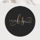 Modernes Black Gold Feminine Script Mit Monogramm Rundaufkleber. Dieser moderne, elegante Aufkleber lässt sich einfach mit Ihrem individuellen Monogramm und Namen personalisieren.