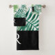 Modernes Schwarzes Leaf Muster Monogram Badezimmer Badhandtuch Set