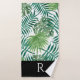 Modernes Schwarzes Leaf Muster Monogram Badezimmer Handtuch