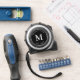 Moderne weiße "Mass Twice Cut Once" Zitat Monogram Design. Ein minimalistisches Monogramm-Design mit einer großen Serifentypografie, die in einem klassischen Schriftart auf einem soliden schwarzen Hintergrund beginnt.