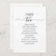 Modernes und elegantes Design bedruckt Schwarz-weiße Kalligrafie Script Tischnummer 2 Seating Chart Cards, die mit Ihrem Text angepasst werden können und jede Tischnummer zu Ihrem Karton hinzufügen, eins nach dem anderen. Bitte klicken Sie auf den Button "Anpassen" und verwenden Sie unser Designwerkzeug, um diese Vorlage zu ändern. Karo im Grafikdesign-Store für andere Produkte, die diesem Design entsprechen!