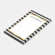 Moderne stilvolle Schwarzweiss-Streifen und personalisierte Post-Itanmerkungen des goldenen Rahmens.