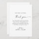 Dieses moderne Drehbuch 12x18" danke Ihnen Empfang Flachkarte ist perfekt für eine minimalistische Hochzeit. Das schlichte Schwarz-Weiß-Design zeichnet sich durch eine einzigartige industrielle Schrift mit modernem Boho-Stil aus. Anpassbar in jeder Farbe. Behalt das Design minimal und elegant, wie es ist, oder personalisiere es durch Hinzufügen von eigenen Grafiken und Kunstwerken. Platzieren Sie diese Karten am Tisch für jeden Ihrer Gäste an Ihrem Hochzeitsempfang. Personalisieren Sie die Karte mit Ihren Namen und einer besonderen Danksagung.