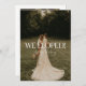 Moderne Script 2-Foto Hochzeitskarte. Passen Sie mit 2 Ihrer Lieblings-Hochzeitsnacht-Fotos auf der Vorder- und Rückseite, Braut- und Bräutigamen in elegantem Schriftsatz und Ihre Botschaft für Freunde und Familie auf der Rückseite an.