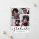 Fügen Sie Ihre Lieblings-vier Fotos an der Vorderseite dieser Abschlussfeier Einladungen mit Absolvent und Klasse der in schicken Schriften auf einem weißen Hintergrund und Ihre Informationen auf der Rückseite. Klicken Sie auf Weitere Links anpassen, um die Vorder- und Rückseite, die Schriftart und das Layout mit unseren Designtools zu ändern. Weitere Designs und Farben in unserem Shop, einschließlich Einladungen, speichern Sie die Datumskarten und Postkarten.