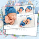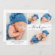 Modern Elegante Kalligraphie Script 4 Foto Collage Baby Boy Danke Karte. Enthält eine schöne handgeschriebene Kalligraphie danke Ihnen swash Schwanz Schriftart Skript und Ihre persönliche Nachricht. Ideal für Junge oder kleine Mädchen. Einfach mit Fotos und Details für Ihr Baby personalisieren.
