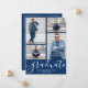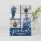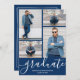 Fügen Sie Ihre Lieblings-vier Fotos an der Vorderseite dieser Abschlussfeier Einladungen mit Absolvent und Klasse der in schicken Schriften auf einem marineblauen blauen Schulhintergrund. Klicken Sie auf Weitere Links anpassen, um mit unseren Designtools zu einer beliebigen Farbe zu wechseln. Weitere Designs und Farben in unserem Shop, einschließlich Einladungen, speichern Sie die Datumskarten und Postkarten.
