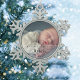 Modernes Script Baby Foto Erste Weihnachten Schneeflocken Zinn-Ornament