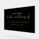 Modernes, elegantes Script Black Gold Wedding Willkommenszeichen