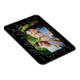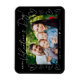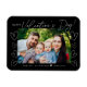 Moderner Valentiner Tagesmagnet mit dem "Happy Valentine's Day" in einem trendigen, weißen Drehbuch mit von Hand gezeichnet Herzen an den Seiten des Designs auf schwarzem Hintergrund. Ihr horizontales Foto wird in der Mitte des Designs angezeigt. Personalisieren Sie den Valentinstag Foto Magneten, indem Sie Ihren Namen und das Jahr in weißer Schrift hinzufügen.