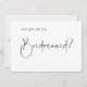 Diese minimalistische Schrift Bridesmaid Vorschlag-Karte ist der perfekte Weg, um Ihr Brautparty im Stil zu feiern. Mit eleganter und moderner Typografie. Sie können dieses Design personalisieren, indem Sie auf "Diese Vorlage personalisieren" klicken oder wenn Sie den Schriftart, die Hintergrundfarben ändern oder die Designelemente anders anordnen möchten, klicken Sie auf "Bearbeiten mit dem Entwurfswerkzeug".
