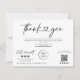 Diese moderne Visitenkarte mit einem herzlichen Schriftart ist der ideale Weg, um Ihren geschätzten Kunden Wertschätzung zu zeigen. Passen Sie diese mit einer herzlichen Nachricht und einem speziellen Gutscheincode an, damit Ihre Kunden sich wirklich wohlfühlen. Machen Sie es Ihren Kunden einfach, mit Ihnen in Verbindung bleibe, indem Sie Ihre Social Media-Informationen und Kontaktinformationen hinzufügen. Um es zu ergänzen, enthält diese Dankeschön-Karte einen QR-Code für Sie, damit Ihre Kunden eine Überprüfung verlassen.