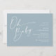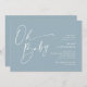 Modernes Script Dusty Blue Boy Oh Baby Dusche Einladung. Klicken Sie auf die Schaltfläche Personalisieren, um dieses Design mit Ihren Details anzupassen.