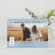 Diese staubblaue Save the Date-Karte verbindet zeitlosen Charme mit modernem Design. Das Top zeigt "Save the Date" in eleganter Schrift, gefolgt von einem großen Paar Foto mit einem schwarz gesäumten Datumsfeld für eine fette Aussage. Namen, Hochzeitsort und ein einfacher Script-Hinweis sind unten ordentlich angeordnet, wodurch ein gepflegtes und raffiniertes Aussehen entsteht. Ideal für Winter-, Küsten- oder klassische Hochzeiten.